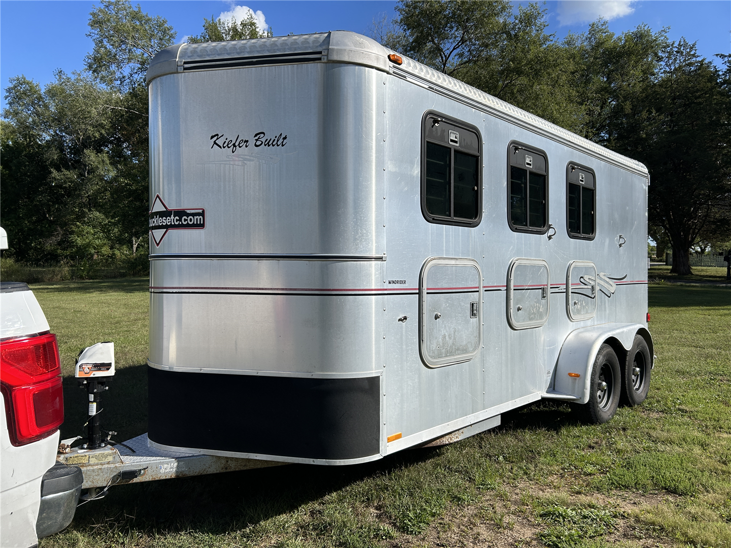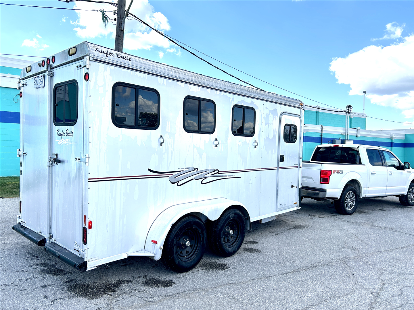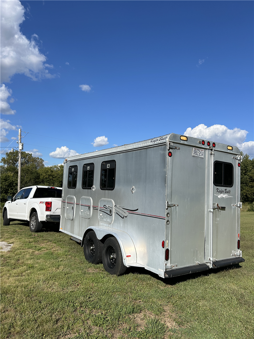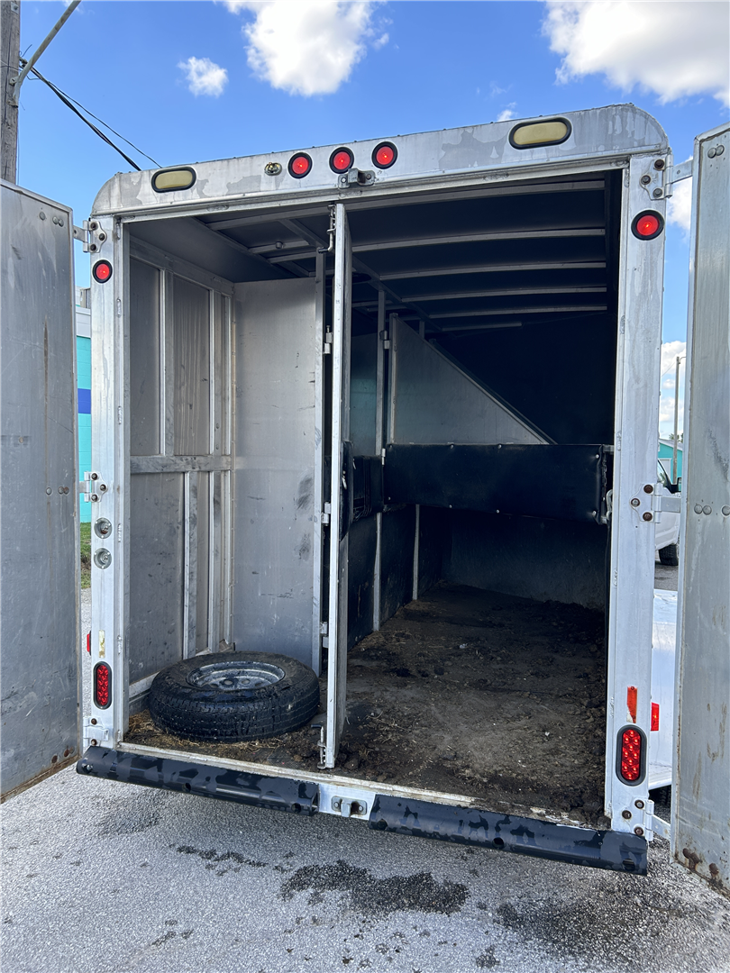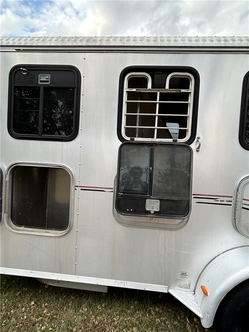 This is a very nice older trailer that offers several desirable upgrades. Standing 7.2 ft tall and 6.6 ft wide, it provides a comfortable interior for your horses. The trailer features extra hay storage inside and is constructed entirely of aluminum. Recent updates include a brand new lighting harness, a brand new electric jack, and matching newer tires, making it a solid and well-equipped option.
