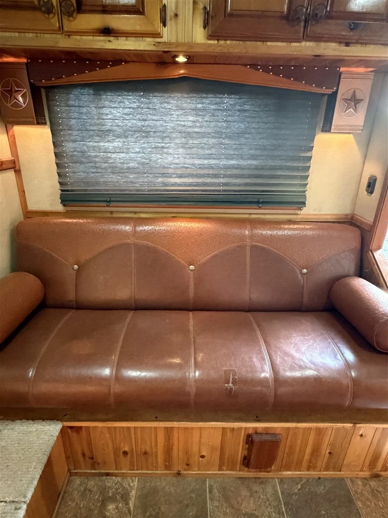 This used 2004 Elite 4 Horse Gooseneck Trailer with 14’ living quarters and bunk beds is designed for rodeo life, ranch work, and long-haul comfort. Built with Elite’s legendary all-aluminum construction, this trailer is strong, reliable, and ready to haul your horses safely while providing home-like amenities on the road.