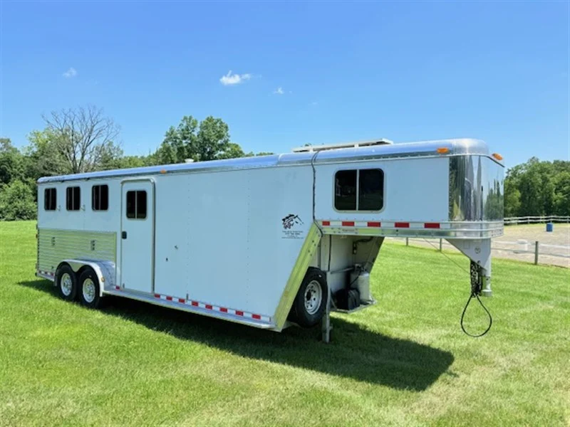 This 2006 Featherlite 3 Horse Slant Gooseneck comes with a mid tack area and a weekender front section, offering versatility and convenience for hauling and short stays.