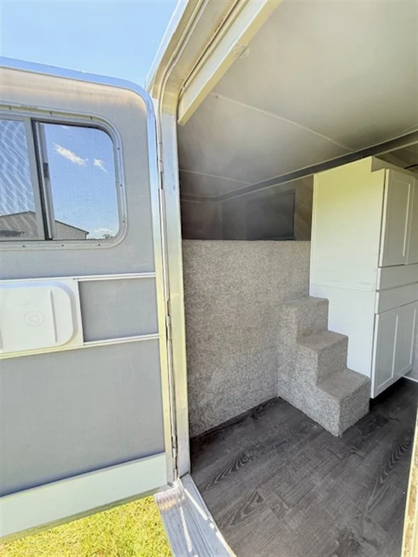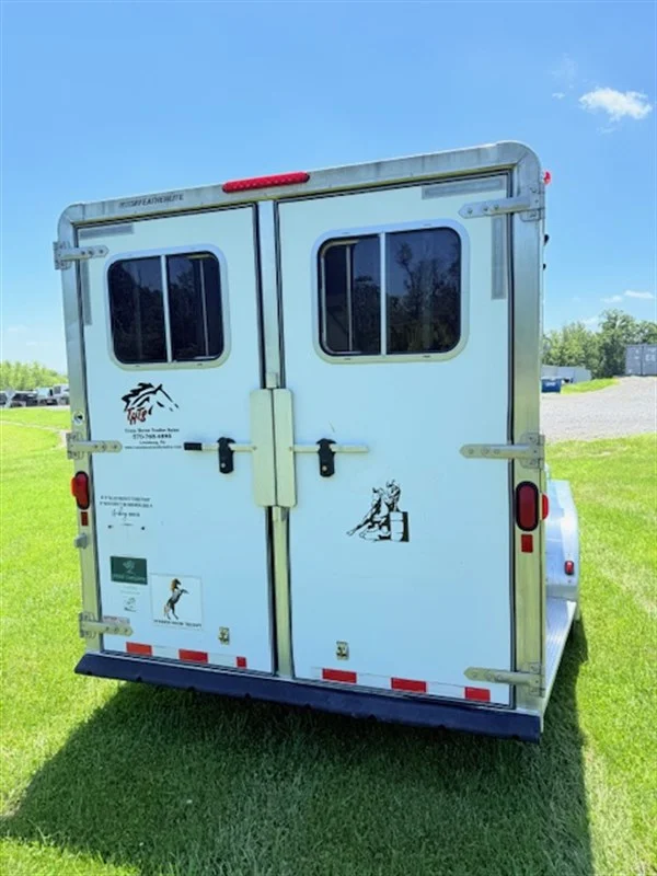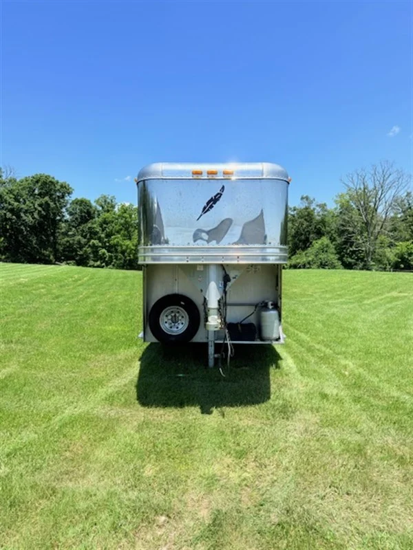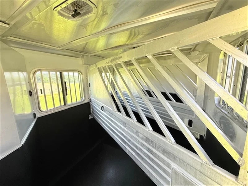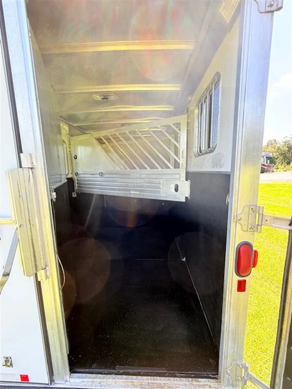 The horse area is equipped with drop-down windows on the head side and sliders on the butt side. This trailer also comes with newer G-range tires in great shape.